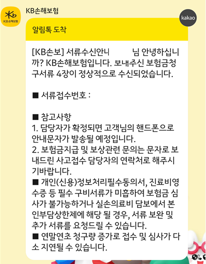 혹시나 서류 사항이 부족하거나 잘못 업로드 될 시, 손해보험 측에서 문자가 따로 오더라구요.