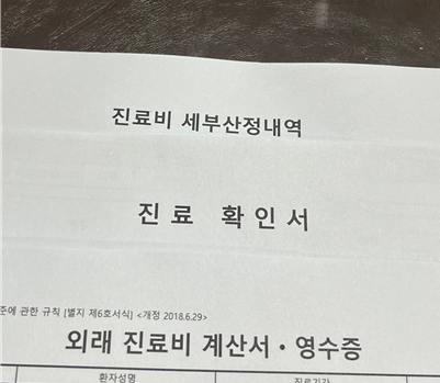 진료 확인서 (병원에 요청 시, 3000원이 비용 듦)