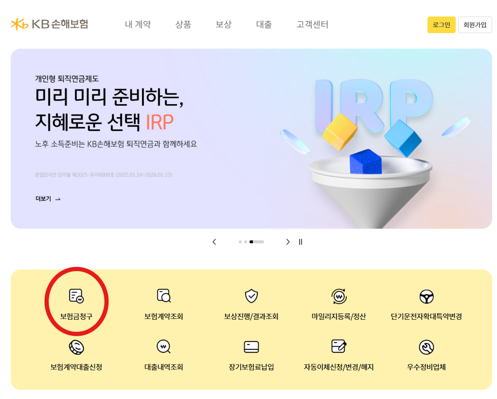 이렇게 준비 후, KB 손해보험에 들어갑니다.